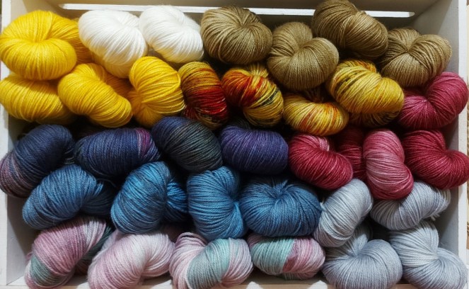 Lentement bien évidemment! Mais soyez sans crainte, si je vous dit que je teins environ une dizaine de balles par jour depuis un mois! À mais là, vous vous demandez pourquoi il n’y a rien sur les réseaux, c’est qu’il s’agit d’un secret chuttttt!!!!! Je … en fait ON vous réserve une belle surprise pour l’automne. Et là vous vous demandez, mais qui ça on? Effectivement, j’oublié de mentionné que mes belles créations étaient seulement disponibles à la boutique Les mains filées de Victoriaville. En vl’a un beau oOps. Janie, ma belle amie, m’a généreusement offert une place de choix parmi toutes ses autres beautés qui égaient ses tablettes. Ensemble, nous avons choisi deux nouvelles bases qui feront clairement le bonheur de plusieurs!